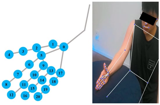 - Zhang, F.; Bazarevsky, V.; Vakunov, A.; Tkachenka, A.; Sung, G.; Chang, C.-L.; Grundmann, M. Mediapipe hands: On-device real-time hand tracking. arXiv 2020, arXiv:2006.10214. [Google Scholar]
