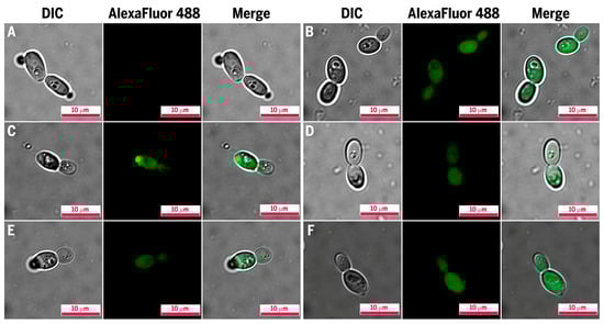 3.2. Localization of AlexaFluor 488-Labeled Peptides in C. albicans Cells