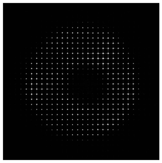 As a light beam propagates through atmospheric turbulence, its optical field is affected by the turbulence, leading to changes in both the phase and amplitude of the optical field. These changes are random and vary with time and space. To study the phase changes, a wavefront sensor can be placed at the receiving end to observe the wavefront phase distribution and variations on the receiving plane after the light beam has passed through atmospheric turbulence. The receiving end uses a centrally obscured Maksutov antenna, resulting in the wavefront sensor detecting an annular spot, as shown in Figure 1. Therefore, this paper employs annular Zernike polynomials to decompose the wavefront phase. Annular Zernike polynomials are a type of polynomial used to describe wavefront aberrations in optical systems. They are an extension of traditional Zernike polynomials, which are suitable for optical systems with annular apertures, such as telescopes with central obstructions. These polynomials are orthogonal within the annular region and can effectively represent wavefront aberrations for annular apertures. The wavefront sensor used in this study detects a spot array of 32 × 32, with the central dark spot array being 8 × 8. The ratio of the inner to outer diameter is 0.25, and the obscuration ratio is 0.25.