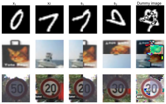 The flow of generating dummy images described in the DIG algorithm is shown in Figure 1, where and are two random images from two different classes of the data set, and are intermediate images formed using horizontally and vertically flipped halves of and , and lastly, the Dummy image is the resultant image after adding to . The created dummy class by the DIG algorithm will restrict the likelihood that only images within the data manifold should be classified correctly, while unrelated or altered images are identified as adversarial.