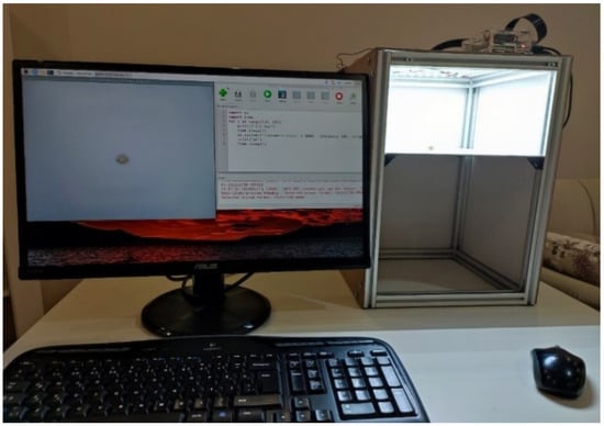 Certified chickpea seed samples (verified by domain experts) have been obtained from various agricultural research institutes. A controlled environment has been set up to capture images of the samples (see Figure 3). The chickpea images have been obtained with the Arducam Hawk-Eye Camera module with autofocus features integrated into the Raspberry Pi 4–8 GB system from a height of 15 cm under a white LED light of 1050 candela intensity.