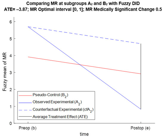 DID, in its basic form, is equivalent to regression analysis over two dummy variables—one for the time period and one for the group membership. It is an easy-to-estimate quantitative method with understandable ideas [8]. It will always assess (correctly or incorrectly) the effect of intervention R over parameter X. However, the DID requires that all the assumptions of the least-squares model (the ordinary or the weighted one) hold [9]. One of the additional assumptions of DID is “the parallel trends assumption”. The latter claims that the expected outcome for the treated and untreated populations would have been parallel if, counterfactually, no treatment was applied to both populations. This is a demanding assumption and rarely can be tested properly [10]. The same is true for the other assumptions of the DID [11]. Another major drawback of DID is that it can work only when the preferences over X are monotonic, which is rarely the case in medical studies. Last, but not least, DID is incapable of assessing the practical significance of the observed changes regardless of their statistical significance.