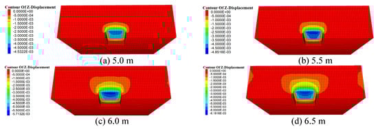 Contour of vertical displacement for different lengths driven in a gallery width of 5 m.