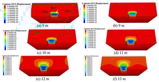 Contour of vertical displacement for different widths driven in a gallery length of 10 m.