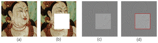 In this study, the image restoration of damaged murals was achieved using Dunhuang murals as the research object. Previous studies demonstrated the potential of deep learning techniques for mural restoration [36,37]. Hence, we used convolutional neural networks with the unique texture features of Dunhuang murals to train a mural restoration model. We focused on two types of center regular defects and random irregular defects to improve the local and global restoration of murals.