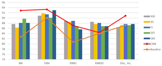 Based on the confusion matrix values, we define the measures Precision and Recall for our system. Precision measures the accuracy of positive predictions made by the model. It is calculated as the ratio of true positive observations to the total predicted positives. Recall, on the other hand, measures system’s ability to make true positive classifications and is defined as a ratio of true positives and all actual positive values. These metrics are often used together to provide a complete picture of the performance of a model. In many practical applications, there is a trade-off between precision and recall, which can be balanced depending on the specific requirements. In the oncological classification, keeping both values as high as possible is very important. For the comprehensive assessment of the classifiers, Error and Accuracy were also calculated. Error is the proportion of false positives and false negatives to the total number of samples, while Accuracy is simply 100% − Error.