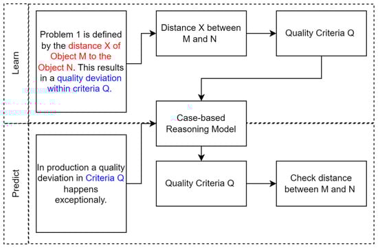 Reusing existing knowledge and reasoning is an efficient way to enhance the design quality. A structured and context-rich knowledge base is essential [,]. Our selected data layer, SN, covers this requirement. The core component of CBR is called case memory (CM), which is a database that stores all structured information and problem-solving relations. How the CM organizes its internal data can differ from domain to domain. Aamodt and Plaza [], early adopters of CBR, describe the Generalized Episode (GE) method. It is proven to apply to generalized and case-specific knowledge as it works in a simplified way of human reasoning and learning.