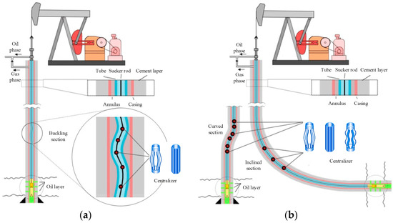 3D curved wells. (a) 3D buckling in vertical wells; (b) 3D buckling in directional wells.