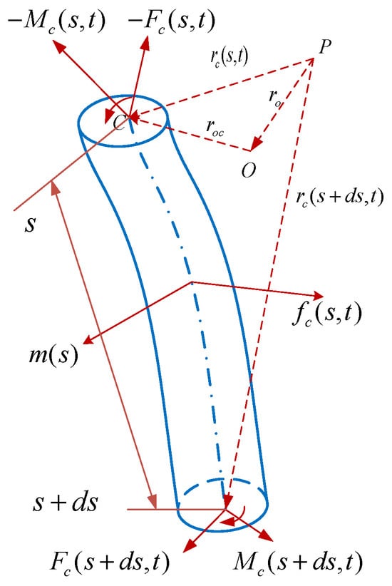 Figure 3 is a geometric relationship of the 3D curved well trajectory [24]. The geometric position of any point on the wellbore axis in three-dimensional space can be described by vector diameter. Deviation angle and azimuth angle are applied to describe the tangential direction vector of the well axis trajectory. The s is the vector diameter; is the borehole ace length; is the deviation angle; is the azimuth angle; and is the unit vector in the tangential direction.