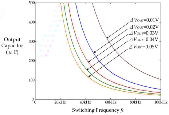 Output capacitor versus switching frequency fS under different output voltage ripples ΔVOUT.