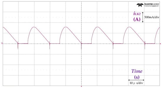 Experimental waveform of leakage inductor current iLK2 (500 mA/div); time scale: 10 μs/div.