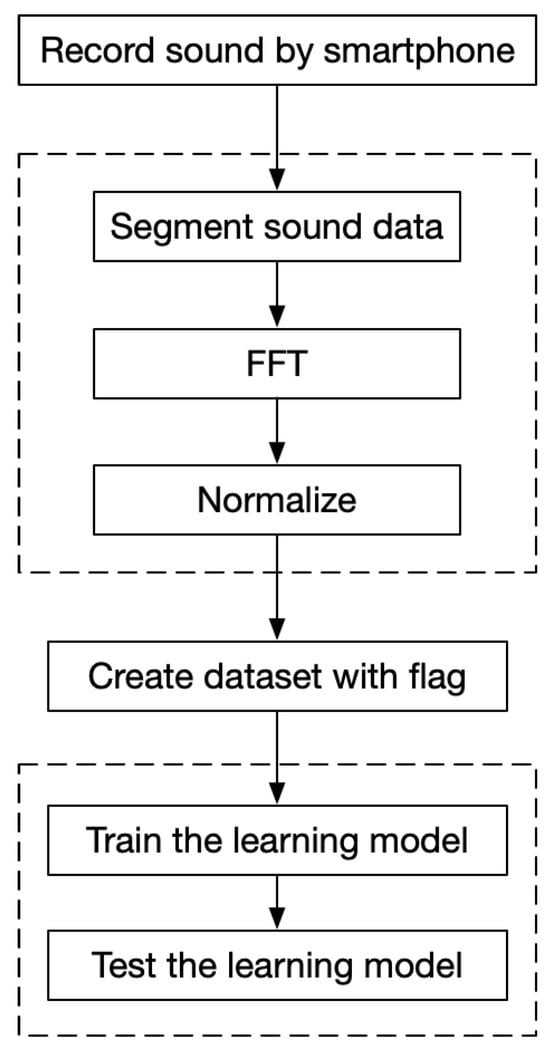 - Fukumura, T.; Aratame, H.; Ito, A.; Koike, M.; Hibino, K. Improvement of sound classification method on smartphone for hammering test using 5G network. Int. J. Netw. Comput. 2022, 12, 359–371. [Google Scholar] [CrossRef] [PubMed]