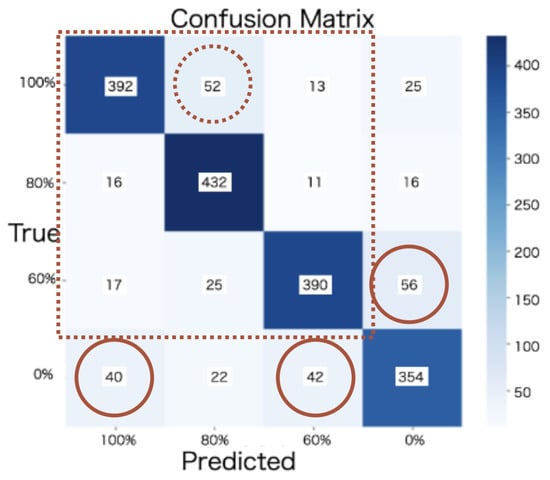 - Of the data classified at 60, 80, and 100%, 104 samples were misclassified as 0%.