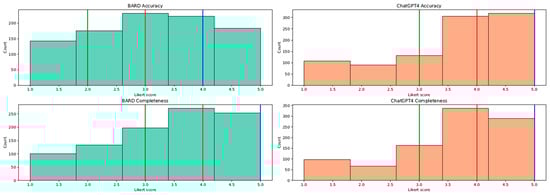 | Completeness | Bard | 3.33 | 1.452 | p = 0.002 * | |