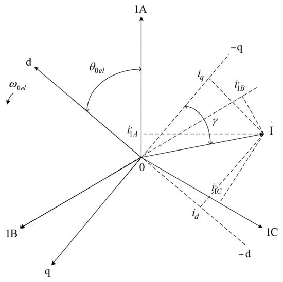 In general, the transformation involves converting an equation system with varying coefficients in the phase coordinate system (A, B, C or 1A, 1B, 1C) into an equivalent system expressed in the dq0 coordinate system. This transformation simplifies the mathematical representation and facilitates the analysis and control of electrical machines [69].