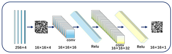Next, the feature information of the grayscale image groups was integrated through convolutional neural networks, converting them into single-channel 16 × 16 grayscale images. The neural network structure was designed as shown in Figure 1.