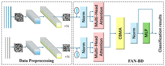 Guo Haike et al. [13] adopted data-level fusion, directly combining the raw data of vibration signals and current signals. Although this method can increase input information in some cases, due to differences in physical characteristics, sampling frequencies, and value ranges between vibration and current signals, this direct fusion may lead to information loss or noise interference, increasing model complexity and training difficulties. Hongfeng Tao et al. proposed a semi-supervised planetary gearbox fault diagnosis model based on GAT using fuzzy distance nearest neighbor clustering. This can better extract fault features with few labeled samples, providing a new means of gearbox fault diagnosis [14]. Hongfeng Tao et al. also developed an indirect iterative learning control scheme for batch processes with time-varying uncertainties, input delays, and disturbances. This scheme is based on the repetitive process stability theory and can effectively control batch processes [15]. Zhongmei Wang et al. [16] adopted decision-level fusion, performing feature extraction and classification separately for each modality before decision fusion. While this method is simple to implement, it cannot fully explore the deep associations between different modalities and tends to ignore complementary information between modalities. Therefore, following a comparison of different fusion strategies, this paper chose to perform fusion at the feature level [17], which can avoid heterogeneity problems in data-level fusion while fully extracting the deep features of each modality through convolutional networks and the Vision Transformer (ViT) [18] self-attention mechanism. It used the Channel-Based Multi-Head Attention (CBMA) mechanism [19] to efficiently fuse features from different modalities, maximizing the complementary advantages of multi-modal data to achieve more accurate fault diagnosis results. This strategy is relatively mature and has obvious advantages, effectively improving the accuracy and robustness of fault diagnosis.