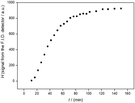 As previously stated, each sampling peak’s height reaches a maximum value of H = H∞ and then stays constant. Equation (2) provides the relationship between the maximum height H∞ and the concentration of the evaporated aroma component, c(l) [53].