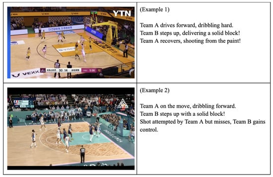 In Example 1, however, the location of the shooting action is incorrectly recognized as being in the paint zone, although it is not. This issue seems to arise because the YOLO-based model recognizes individuals using bounding boxes but fails to accurately determine the precise standing position of the player. To address this, future improvements should focus on stabilizing the recognition of foot positions by using the lowest point of the bounding box as the reference. In the example, there were no errors in the scene description, but the commentary followed a similar pattern to Example 1. This seems to be a result of the limited input format, which makes it challenging to generate a diverse understanding of the situation. Therefore, prompt engineering should be utilized in the future to add more context to the descriptions, or methods like the Chain of Thought approach should be explored to enable a more varied commentary for different situations. Additionally, in future studies, we aim to complement the subjective analysis by objectively evaluating the generated commentary through comparisons with existing professional commentaries.