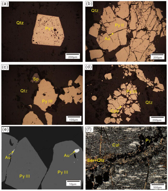- Yang, L.Q.; Deng, J.; Wang, Z.L.; Guo, L.N.; Li, R.H.; Groves, D.; Danyushevsky, L.V.; Zhang, C.; Zheng, X.L.; Zhao, H. Relationships Between Gold and Pyrite at the Xincheng Gold Deposit, Jiaodong Peninsula, China: Implications for Gold Source and Deposition in a Brittle Epizonal Environment. Econ. Geol. Econ. Geol. 2016, 111, 105–126. [Google Scholar] [CrossRef]