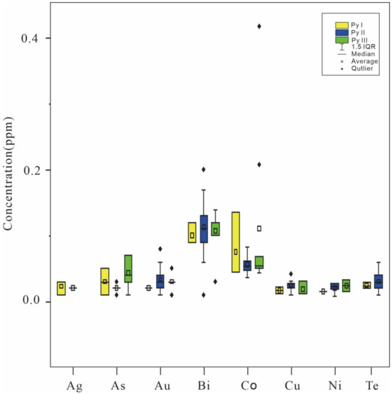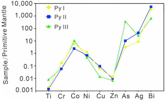 | Py III | JJ20-4(2)-1 | 2.07 | ≤b.d.l. | 78.90 | 2.20 | 35.86 | 0.00 | 0.00 | 771.00 | 0.01 | ≤b.d.l. | ≤b.d.l. | - |
