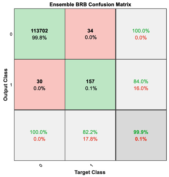 With these improvements, the ensemble BRB model can better handle fraud detection problems. The experimental results demonstrate that the ensemble BRB achieves optimal performance across multiple evaluation metrics in Dataset #1. In Dataset #2, the ensemble BRB achieved a performance comparable to the best-performing model. Also, by using BRB as the base classifier, the ensemble model gains enhanced interpretability. The model proposed in this paper focuses on addressing the imbalanced classification and interpretability issues in credit card fraud detection tasks. By combining the ensemble learning framework with the BRB model, we enhanced the model’s interpretability, making the decision-making process more transparent. For instance, when a transaction is predicted as fraudulent, the prediction process can be traced through the BRB’s principle formulas, a feature that helps financial institutions and customers understand the basis for decisions, thereby increasing trust in the system. Additionally, data imbalance often leads to high false positive rates in fraud detection systems, which the ensemble learning framework effectively mitigates. This not only reduces the inconvenience caused to customers and merchants by false alarms but also strengthens financial institutions’ confidence in the detection results.