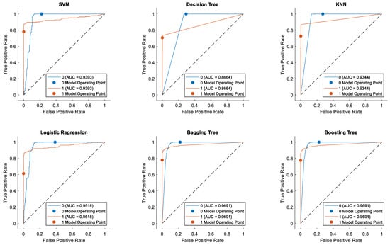 To further validate the effectiveness of our method on the fraud detection task, we plotted the Receiver Operating Characteristic (ROC) curves for the classification results of various models, as shown in Figure 15 and Figure 16. The ROC curve is an important metric for evaluating the performance of binary classification tasks, as it comprehensively reflects the overall performance of a classifier. The area under the ROC curve (AUC) provides a comprehensive assessment of a classifier’s quality. The ROC curve visually illustrates the trade-off between sensitivity and specificity at different threshold settings, aiding in the selection of an appropriate threshold to balance false positives and false negatives. Moreover, the ROC curve is not influenced by the prior probability distribution of the data, making it effective even for imbalanced datasets, rendering it highly suitable for evaluating classification tasks in practical scenarios. These characteristics have led to the widespread application of ROC curves in fields such as machine learning and data mining.