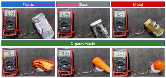 Additionally, the long-term durability and scalability of sensors made from recycled materials constitute challenges inherent to any emerging technology. Although these aspects and hypotheses were not analyzed in detail in this manuscript, they do not compromise the validity of the results obtained. This is because the main objective of the study was to demonstrate the technical feasibility of low-cost capacitive sensors and their integration with machine learning algorithms for waste classification.