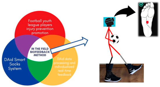 - We present the development of a DAid® smart socks-based biofeedback system designing process combining methods from smart textile design, healthcare, and data analytics in developing a biofeedback method for youth football league players. This rationale is based on the need to develop a user-friendly biofeedback method that highlights technology practical applications in sports injury prevention training.