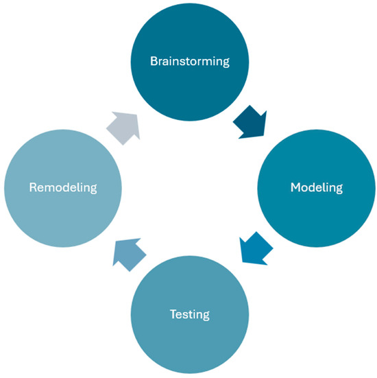 This concept protocol focuses on the design process, utilizing iterative design methods [43]. The development of a proof-of-concept functional prototype for real-time biomechanical monitoring and feedback to enhance injury prevention in football consisted of an iterative design process as a cyclical method (Figure 2) of developing and refining a DAid® smart socks-based biofeedback system through repeated cycles of brainstorming, prototyping, testing, and evaluation [43].