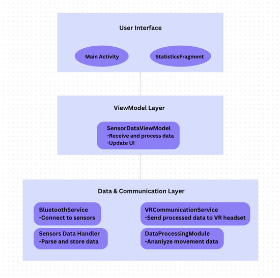 Once the sensor data are received by the application, they are processed in real time and then transmitted to the Meta Quest 3 HMD over a Wi-Fi connection. This allows the user to receive immersive feedback through MR, enabling them to adjust their movements based on the system’s real-time analysis. The combination of Bluetooth for sensor data and Wi-Fi for MR streaming provides a balance between the need for low-latency, high-speed data transmission and power efficiency.
