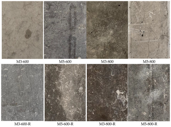 The cured specimens were kept in the oven at 40 °C until the mass values stabilized. The specimens were removed from the oven and exposed to the target temperatures of 400, 600, and 800 °C in a high-temperature oven with a constant heating rate of 5 °C/min. At each target temperature, the oven was fixed for 1 h and then allowed to cool. After cooling, half of the samples were tested, while the other half were placed in water for re-curing for 30 days.
