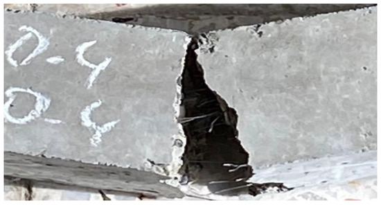 Re-curing the fiber concretes with water after heating changed the behavior of the load–deflection curve after the peak load. Deflection softening behavior was observed in thermally damaged fiber concrete specimens exposed to heating. This situation caused an increase in the flexural strength of the concrete due to the rehydration of cement particles and new phases in the concrete matrix as a result of re-curing, while also increasing the deflection. As a result of the deterioration of the fibers exposed to heating due to oxidation, melting, etc., could not completely accompany the recovery of the concrete and a sharp decrease occurred after the peak load. This sharp decrease can be attributed to the inhomogeneity of the rehydrated compositions and the rapid propagation of micro–macro-size cracks [35].