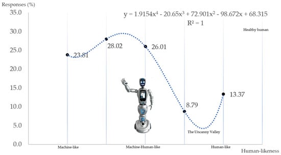 Perceived sociability was measured to understand how it is related to the extent to which social presence is perceived [32,53]. However, the Service Robot Acceptance model (sRAM) used perceived sociability as a social–emotional element directly linked to the acceptance of service robots [26]. In the robot acceptance literature, evidence linking perceived sociability to intention to use is, unfortunately, limited.