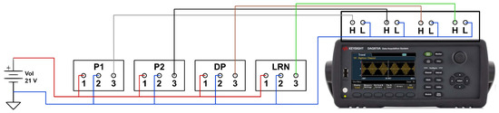 In this study, two different sensor approaches are used for the experiments, and up to four setups are used to capture the required data, as explained in Section 3.1. The first approach is used in setups 1, 2 and 3. It uses hydrostatic liquid column manometer sensors. The second approach was only used in setup 4. It uses electronic WIKA transducers (A-10) connected to a Keysight DAQ970A/DAQ973A, a Data Acquisition System (DAS), which is shown in Figure 4.