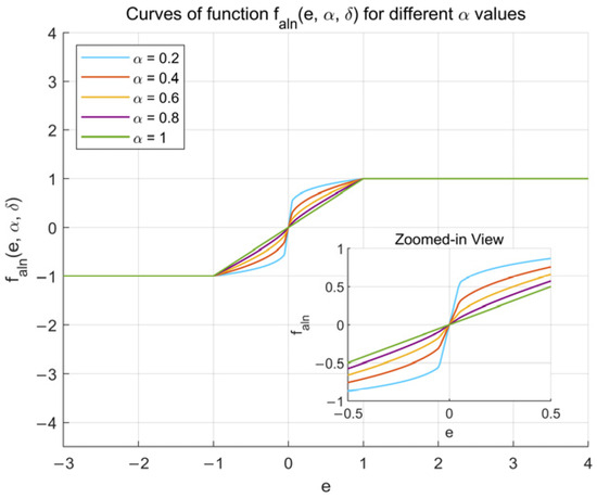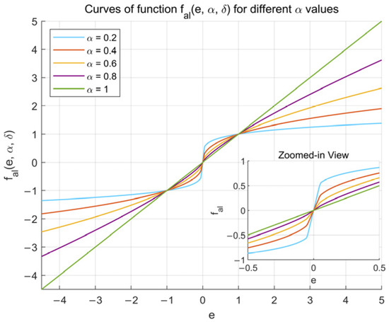 This function segments the error into different ranges, more effectively balancing the intensity of the response, which contributes to preventing excessive system response and reducing the risk of potential instability. The corresponding graph is shown in Figure 4.