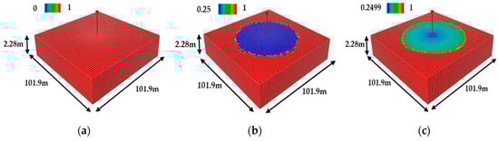 Water saturation (Sw) distribution (a) Initial at day 0, (b) at day 3652 for homogeneous, and (c) at day 3652 for heterogeneous.