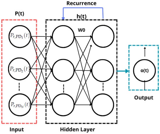 In this study, a single LED transmitter was used to simplify the analysis and focus on evaluating the impact of IRS placement and ADR configurations on received power and the SNR. However, in practical indoor environments, multiple LED transmitters are often deployed to provide uniform illumination and redundant communication links. The extension of this work to scenarios with multiple LEDs could offer additional insight into the performance of RNN-based IRS optimization. With multiple LEDs, the optimization problem becomes more complex, as the RNN must account for overlapping light distributions, interference, and increased spatial diversity [,]. Future work will expand the framework to include multiple LED sources, leveraging the same RNN methodology to dynamically optimize IRS positions and further enhance ADR performance in multi-transmitter VLC scenarios.
