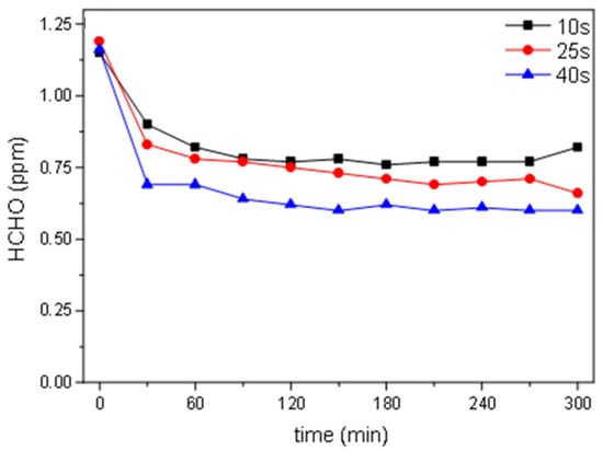 Residence time, or contact time, refers to the duration of a gaseous molecule remaining near the catalyst surface. This parameter significantly influences the photocatalytic degradation efficiency of pollutants. Increasing the residence time allows more contact between pollutants and the catalyst, facilitating reactions with hydroxyl radicals and positively charged holes, thus enhancing efficiency. For instance, studies have shown that extending the residence time of formaldehyde from 10 to 40 s increased the conversion rates from 36% to 48%, respectively (Figure 3) [95].
