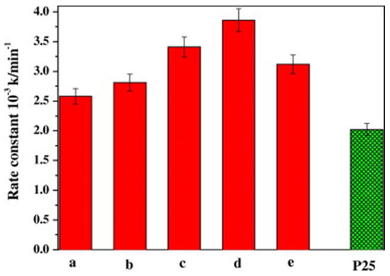 where and are the concentrations of the target pollutant at times and respectively, and is the apparent photocatalytic degradation rate constant.