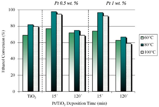 Particle size significantly influences photocatalytic efficiency since it directly affects the specific surface area of the photocatalyst. It has been demonstrated that there is an optimum particle size of TiO2 that corresponds to about 10 nm [116]. A smaller radius can reduce the efficiency of the photocatalytic reactions due to the quantum size effect. This term indicates the phenomenon whereby reducing the particle size to a certain value, these particles have discontinuous energy levels of conduction and valence bands resulting in increasing the energy band gap of the material [113].