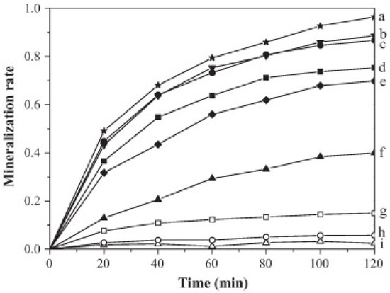 Identifying the onset of photocatalysis is not straightforward; it requires consideration of two criteria. First, photocatalysis becomes the predominant process only after the system reaches an initial equilibrium between adsorption and desorption over a certain period. Second, the start of photocatalysis must also take into account the moment when the yield of the product stabilizes, indicating that the photocatalytic degradation of the pollutant is consistent. The photocatalytic process can therefore begin at different times for various pollutants. For instance, in a study using Mn/TiO2 and Co/TiO2, the initial time of photocatalysis was observed at approximately 120 min, while using Mn/Co/TiO2, it was observed at 20 min [88].