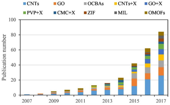 Beyond TiO2, other nanomaterials have been explored for their roles in photocatalytic oxidation, either as pollutant adsorbents or as active photocatalysts. Carbon-based nanomaterials [15], including carbon nanotubes and graphene, have garnered significant interest due to their exceptional adsorption properties and versatile structural characteristics. Furthermore, less commonly used nanomaterials, such as zinc oxide (ZnO) [16] and tungsten oxide (WO3) [17], have also been investigated to expand the range of photocatalytic oxidation applications.