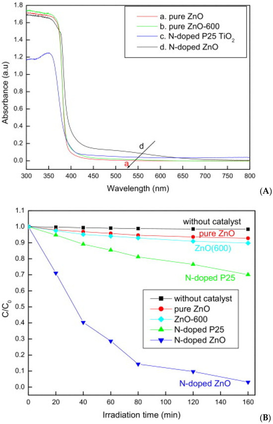 - Wu, C. Facile One-Step Synthesis of N-Doped ZnO Micropolyhedrons for Efficient Photocatalytic Degradation of Formaldehyde under Visible-Light Irradiation. Appl. Surf. Sci. 2014, 319, 237–243. [Google Scholar] [CrossRef]