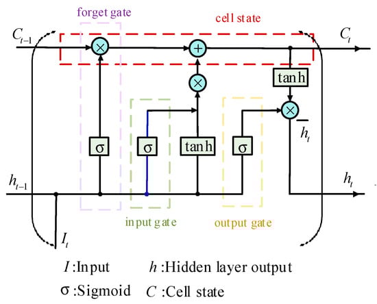 The modeling of wind and solar power is a time-series problem, where there is temporal correlation between adjacent time scales. The Long Short-Term Memory (LSTM) neural network can effectively handle long-period time series by preserving historically relevant information that aligns with the sequence characteristics [22]. Therefore, this paper integrates an LSTM layer into the pre-trained network model to capture and predict both short- and long-term dependencies within the time series. The LSTM structure is illustrated in Figure 5.