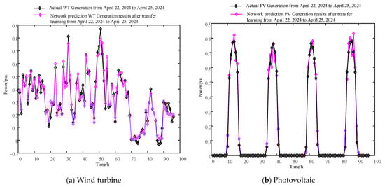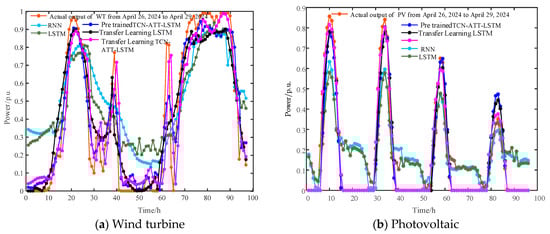 Wind and solar power prediction results by TCN−ATT−LSTM transfer learning model.