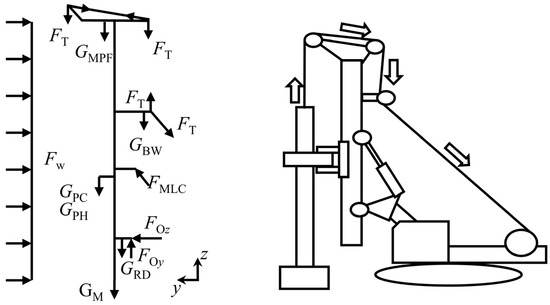 | the weight of the mast | GM | the large disc is fixed at the hinge support | FOz |