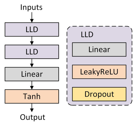 The structure of the noise encoder is a simple fully connected neural network that processes the input noise using a LeakyReLU activation function and maps it to a feature space suitable for the generator. This design enhances the diversity of the generator’s inputs, increasing the model’s generalization capability. The Tanh output layer is used to map the generated noise to a fixed range, providing input to the generator.