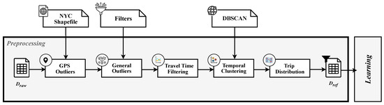 Accurate travel time prediction in urban environments requires both high-quality input data and robust modeling techniques. The proposed framework integrates advanced spatiotemporal data refinement techniques with a deep learning model to address the challenges of capturing complex traffic dynamics. This section introduces the preprocessing methods, feature categorization strategies, and the model architecture that collectively form the foundation of our predictive framework applied to the NYC TLC dataset.