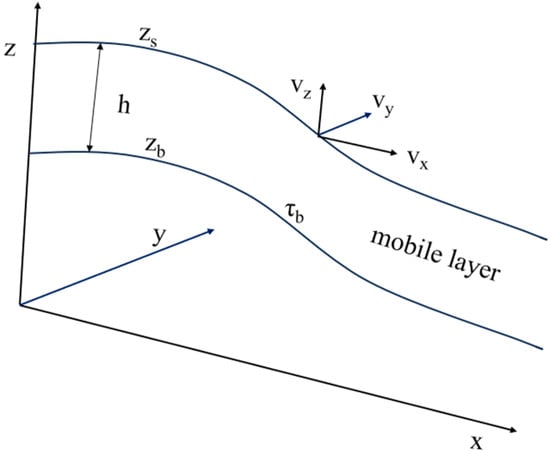 In this paper, a three-dimensional model is employed for simulations. Given that the variation in the tailings sand flow in the vertical direction is much smaller than that in the horizontal direction, the three-dimensional Navier–Stokes equations are integrated vertically. From this, the mass equations, momentum equations, and hydrodynamic control equations that must be satisfied are derived. As illustrated in Figure 1, the model's schematic design is depicted. According to the theory of continuous media, the fluid must satisfy the following control equations [24]: